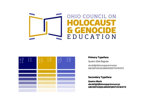 Through research and communication with the OCHGE, I learned that the Holocaust is not only a historical tragedy; it is a contemporary issue. Due to a history of anti-Semitism, genocides and mass atrocities continue to be an enormous challenge for people who are victims of hate group ideologies. Through a brand identity designed to promote education about the precursors of the Holocaust and other genocides promoting tolerance and inclusion against their current societal implications, a significant impact can be made against discrimination and hatred today.